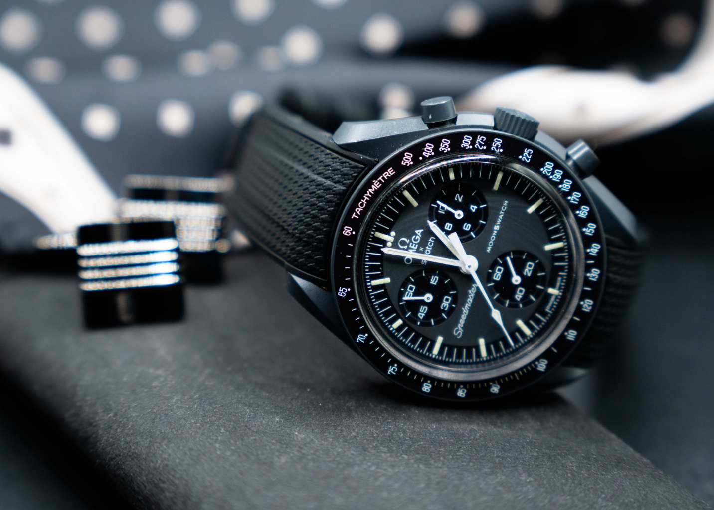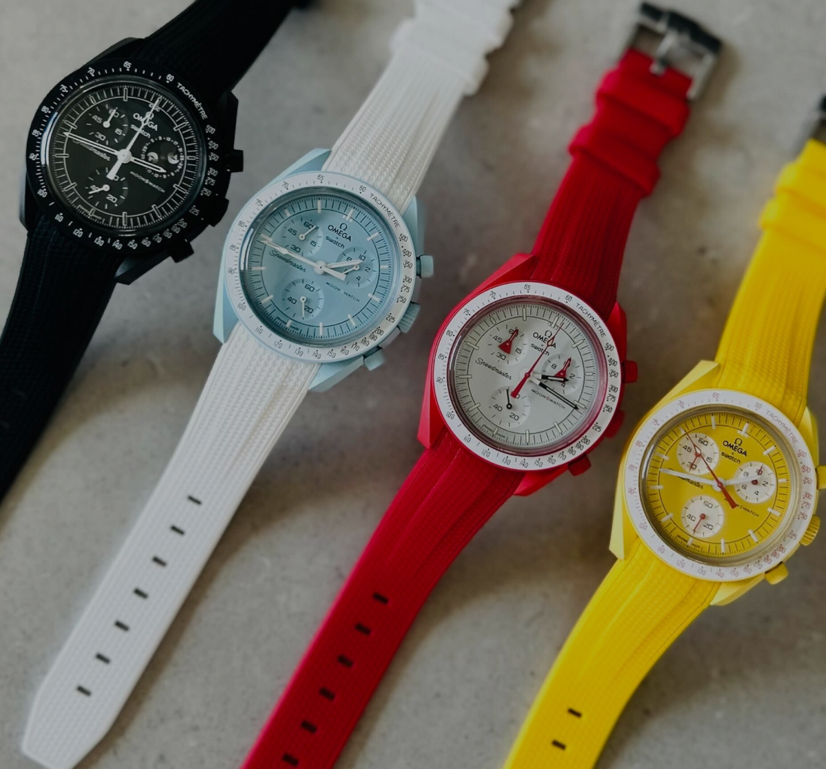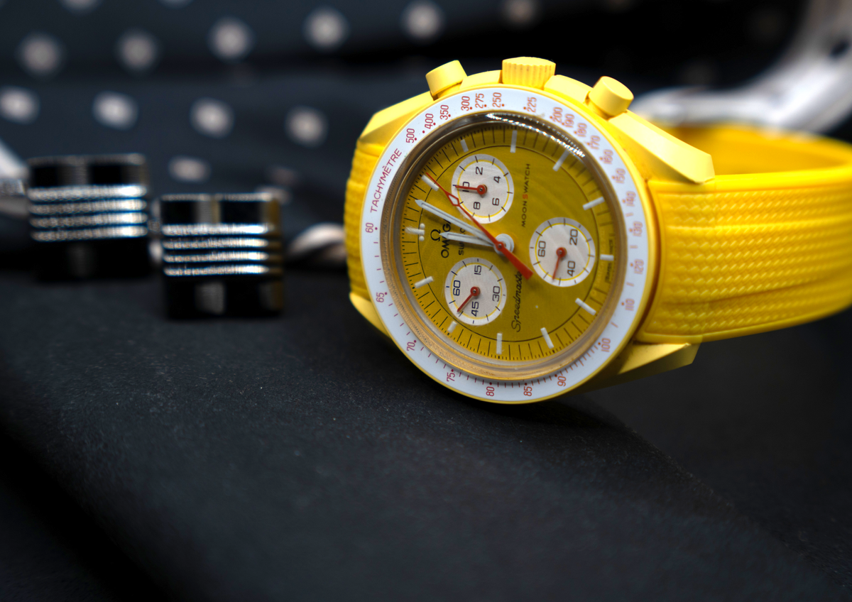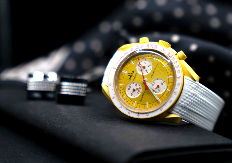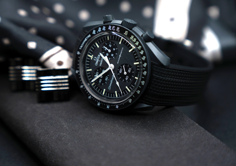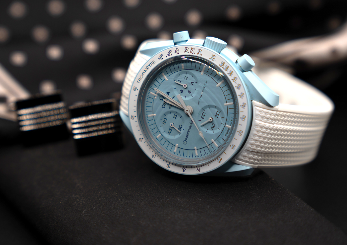 The Omega Swatch Wristband features a sleek design that suits all occasions